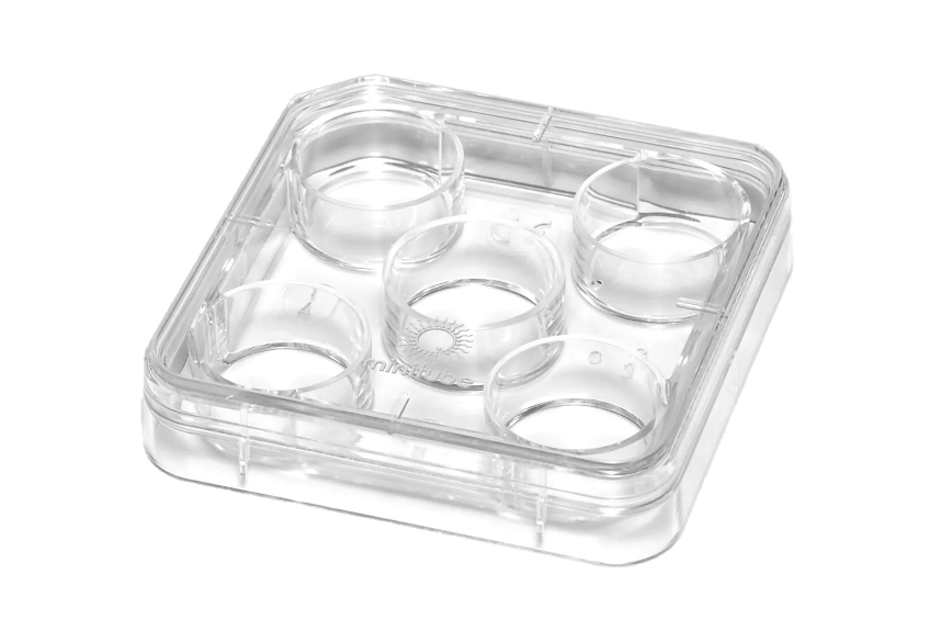 胚胎培养皿,圆润的孔边缘,小鼠胚胎批次测试。由不含双酚 A 的材料制成,旨在促进培养基的 pH 平衡。